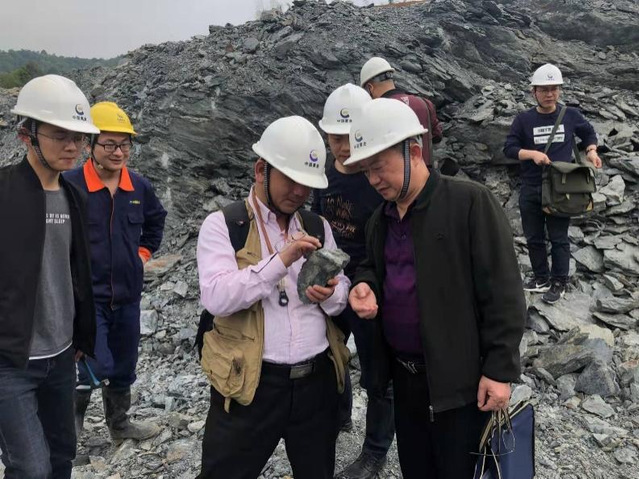 许德如(左三)在江西金山矿区开展找矿勘查工作