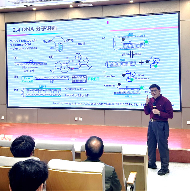 1月18日,国家级高层次人才、西南大学分析化学及药学分析学专家黄承志教授应邀做客欧冠联赛网站“欧冠联赛(中国)”,作题为“DNA用于共振能量转移的调控及纳米共振能量转移光谱分析”的专题报告。学校160余名师生到场聆听。