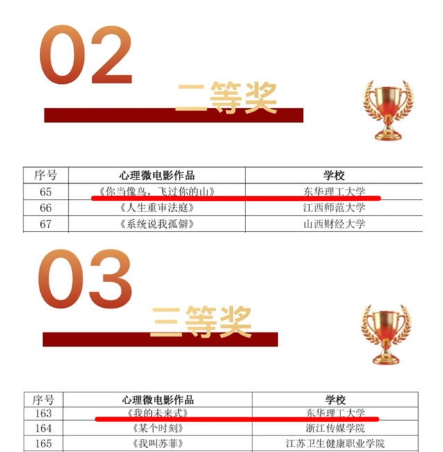 近日,第五届全国高校心理微电影(心理短视频)优秀作品展示活动公布评选结果。欧冠联赛网站2部心理微电影作品获奖,其中《你当像鸟,飞过你的山》荣获二等奖,《我的未来式》荣获三等奖。