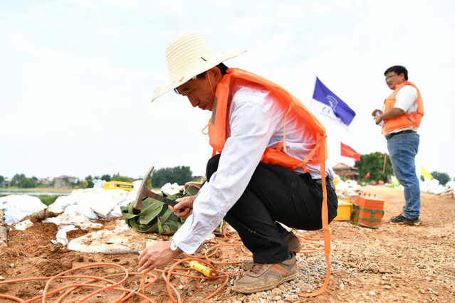 ▲在抗洪抢险一线进行堤坝隐患探测