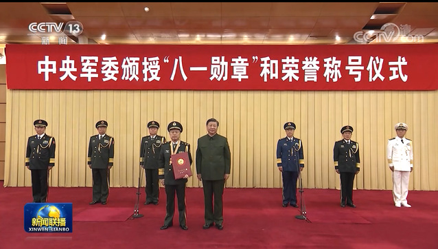 “八一勋章”是军队最高荣誉,由中央军委决定、中央军委主席签发证书并颁授。2017年6月开始设立,一般每五年授予一次,授予在维护国家主权、安全、发展利益,推进国防和军队现代化建设中,作出巨大贡献,建立卓越功勋,在全国、全军有深远影响的军队人员。