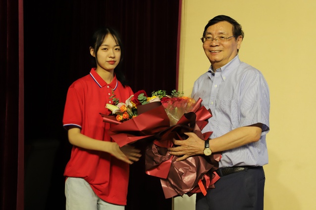 讲座开始前,学生代表向龚健雅院士献上鲜花,表达对其倡导成立“龚健雅创新人才奖学金”“龚健雅励志助学金”的诚挚谢意。据悉,该奖学金和助学金已评选、发放四届,直接奖励和资助我校学生多达数十人。(图/胡佳 文/李小龙)