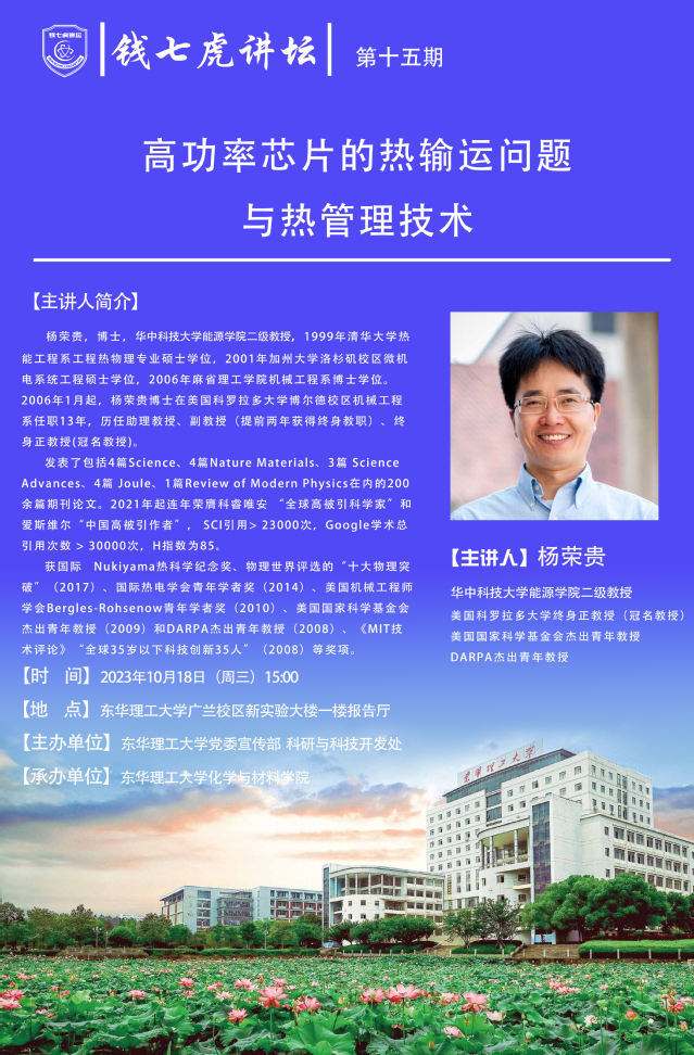 主 题:高功率芯片的热输运问题与热管理技术
