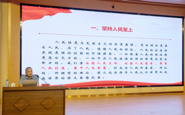 讲座中,刘志明教授结合个人的长期研究,运用大量详实资料和鲜活案例,围绕党的二十大报告中提出的“六个必须坚持”,即必须坚持人民至上、必须坚持自信自立、必须坚持守正创新、必须坚持问题导向、必须坚持系统观念、必须坚持胸怀天下,对其丰富内涵进行了全面而深入的阐释。