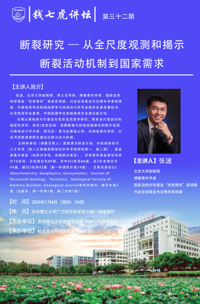 主 题:断裂研究——从全尺度观测和揭示断裂活动机制到国家需求