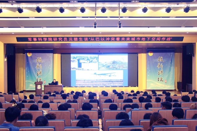 4月2日,中国人民大学法学博士、国防大学法学博士后、军事科学学院研究员况腊生做客核新讲坛,以“从巴以冲突看未来城市地下空间作战”为主题,向广大青年学子分享未来城市地下空间作战模式。全校300余名师生到场聆听。