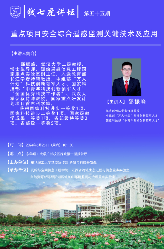 应测绘与空间信息工程学院邀请,国家级人才邵振峰到“欧冠联赛(中国)”,以“重点项目安全综合遥感监测关键技术及应用”为主题开展讲座。欢迎全校师生届时前往聆听。