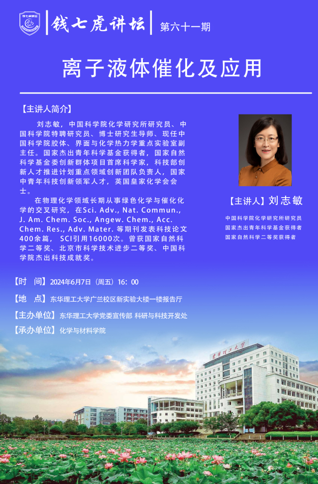 应化学与材料学院邀请,中国科学院化学研究所研究员,国家杰出青年科学基金获得者刘志敏到“欧冠联赛(中国)”,以“离子液体催化及应用”为主题开展讲座。欢迎全校师生届时前往聆听。