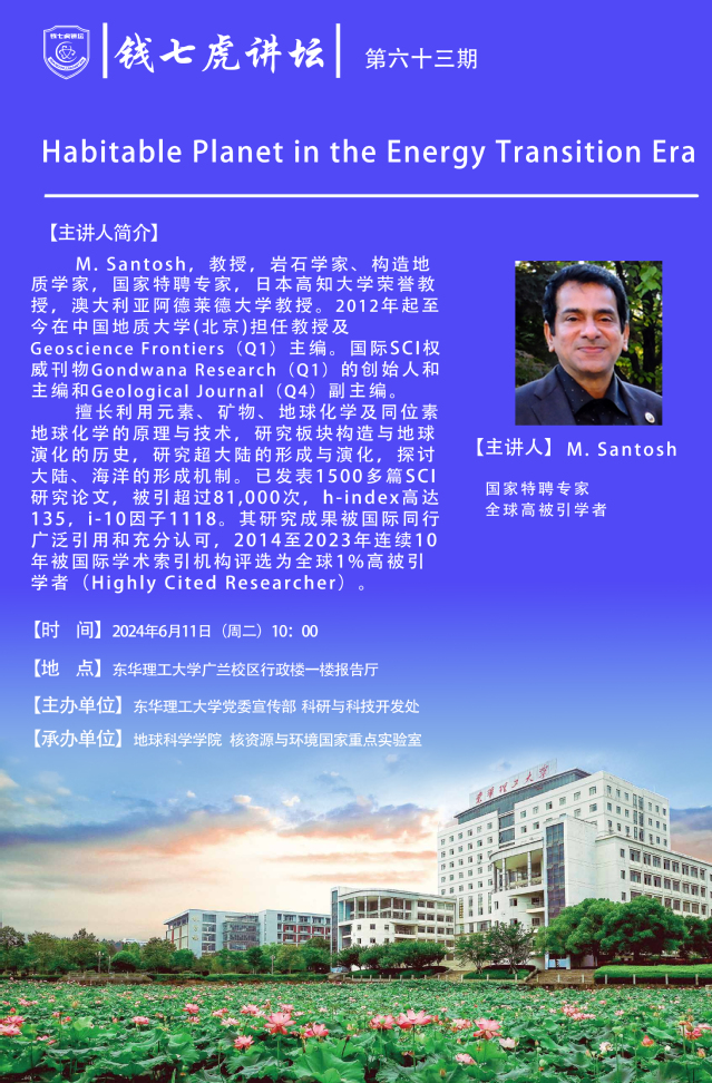 应地球科学学院邀请,日本高知大学荣誉教授,澳大利亚阿德莱德大学教授M. Santosh到“欧冠联赛(中国)”,以“Habitable Planet in the Energy Transition Era”为主题开展讲座。欢迎全校师生届时前往聆听。