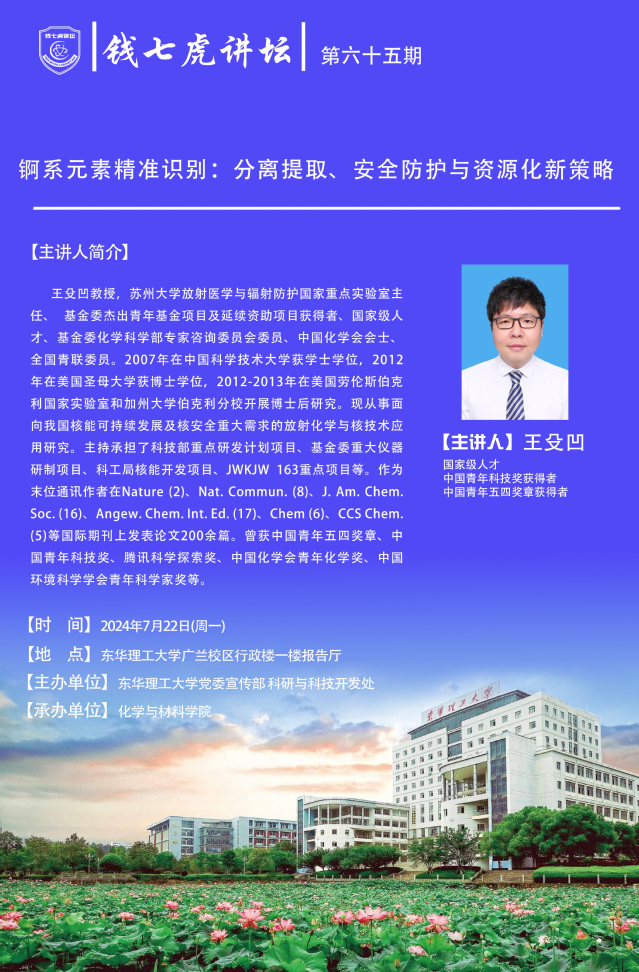 主 题:锕系元素精准识别:分离提取、安全防护与资源化新策略