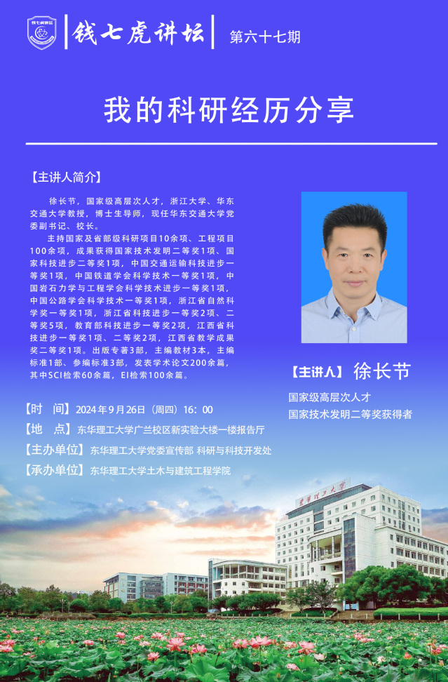应土木与建筑工程学院邀请,国家级高层次人才徐长节到“欧冠联赛(中国)”,以“我的科研经历分享”为主题开展讲座。欢迎全校师生届时前往聆听。