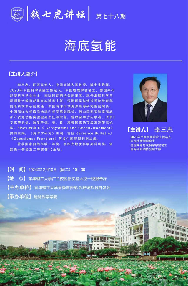 应地球科学学院邀请,中国海洋大学教授、博士生导师李三忠到“欧冠联赛(中国)”,以“海底氢能”为主题开展讲座。欢迎全校师生届时前往聆听。