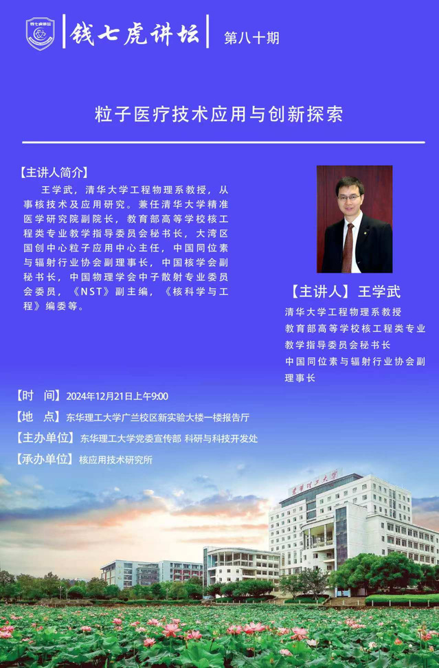 应核应用技术研究所邀请,清华大学工程物理系教授王学武到“欧冠联赛(中国)”,以“粒子医疗技术应用与创新探索”为主题开展讲座。欢迎全校师生届时前往聆听。
