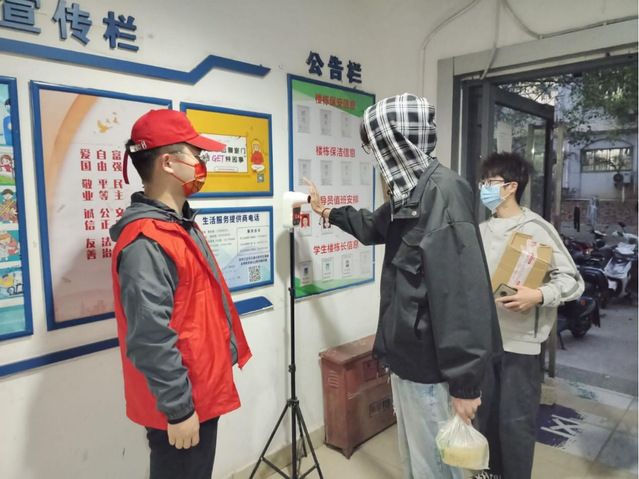 自校园疫情防控以来,身披红色“战甲”的志愿者身影随处可见。从早上8点到晚上10点,他们在宿舍楼下、食堂、超市,为每位同学测温、提醒大家戴口罩,为筑牢校园安全防线默默贡献自己的力量。