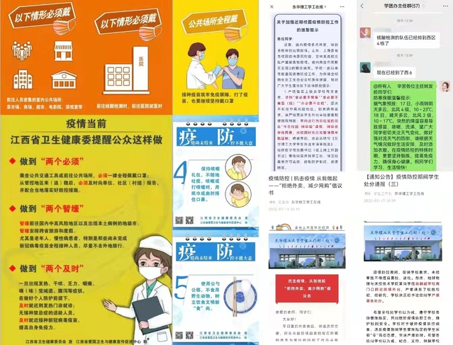 近期,面对全省严峻复杂的疫情防控形势,学校50余名在岗学工干部、辅导员连续奋战,24小时全天候守护1万7千余名东华理工学子的安全,以强烈的政治责任感和使命感,坚持“五化”同步,织牢疫情防控“五张网”,为打赢疫情防控阻击战贡献学工干部力量。